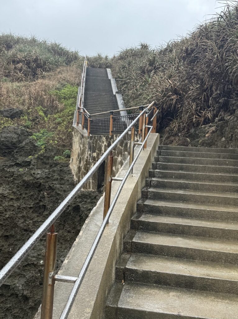 この階段を機材を背負って登り降りします。エントリーは体力も使っていないし降りるだけなので比較的楽かもしれませんが、エキジットは水を含んだ器材、消費した体力、登り階段ということで大変な人もいるようです。ちなみに私(体重100kg程度のアラフィフ)はあまり大変とは感じませんので、若い人なら問題ないのではないでしょうか⁉️